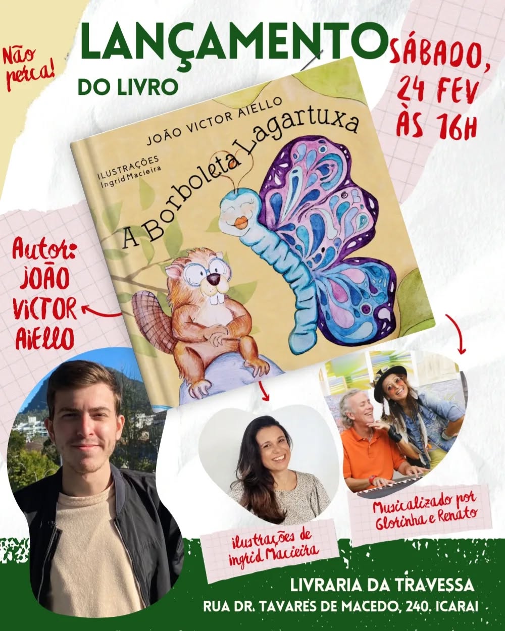 Em 2024, a Livraria da Travessa de Icaraí foi cenário dos lançamentos de dois livros que ilustrei: "O Palíndrome Perdido", escrito por Glorinha e Renato e "A Borboleta Lagartuxa" de João Victor Aiello. Em 2025 foi a vez de lançar "Ayana, uma flor radiante", livro de Isa Colli, desta vez, em uma bonita live de lançameno promovida pela Editora Colli Books. Os três livros estão disponíveis para compra aqui no site. COMPRAR